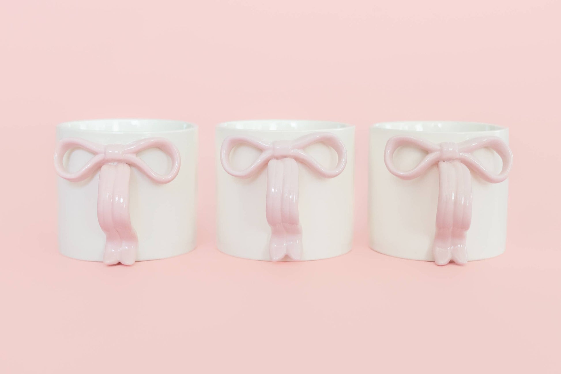 Blush Pink Bow Ceramic Coffee Tea Mug with Ribbon Handle: Pink
