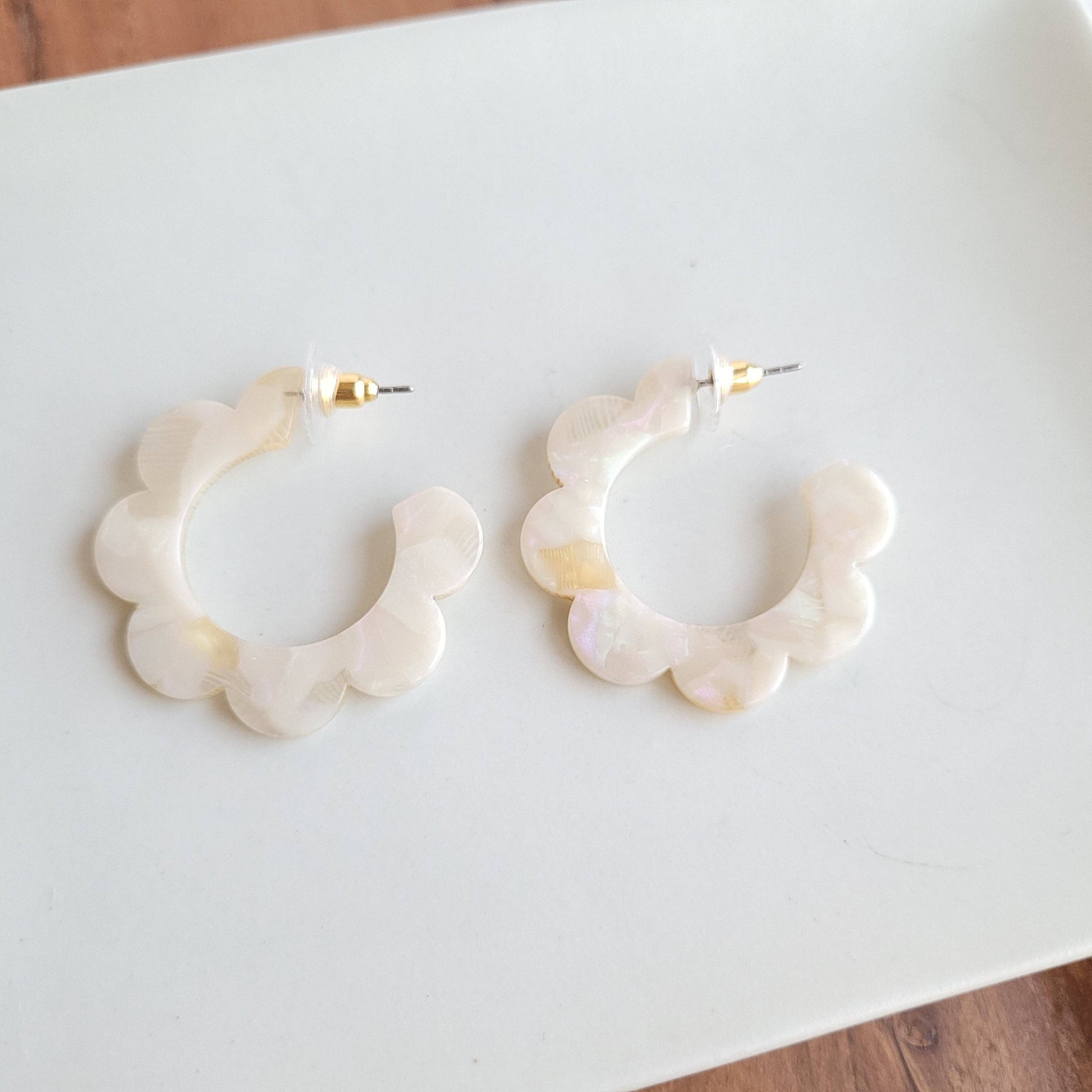 Add a retro vibe to your outfit with our Flora Hoops. The floral design gives these earrings a unique, eye-catching look that's sure to turn heads. Their lightweight design makes them perfect for everyday wear, while the bright colors make them ideal for a fun night out. * Hypoallergenic stainless steel * Lightweight and durable plant-based acrylic * 1.5" diameter