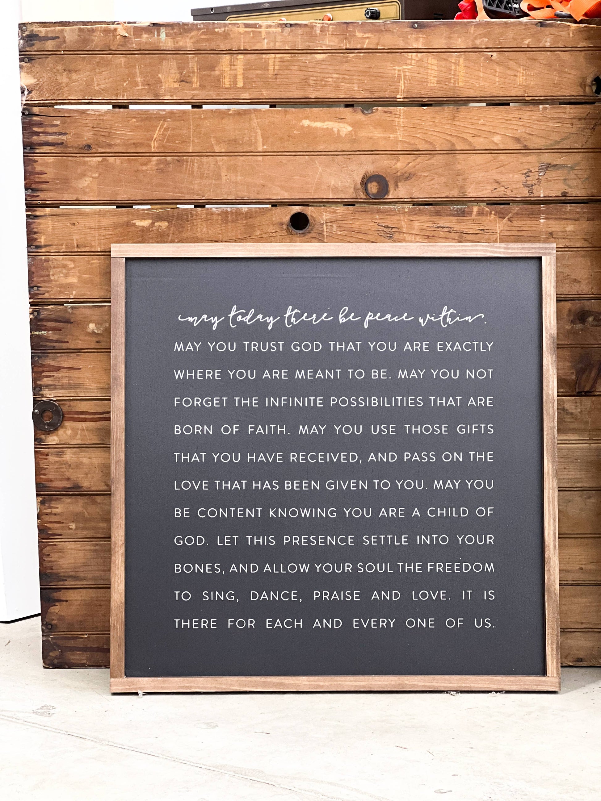 May Today There Be Peace Within | Wall Decor Made in the USA: White / Light Oak / 9x9"